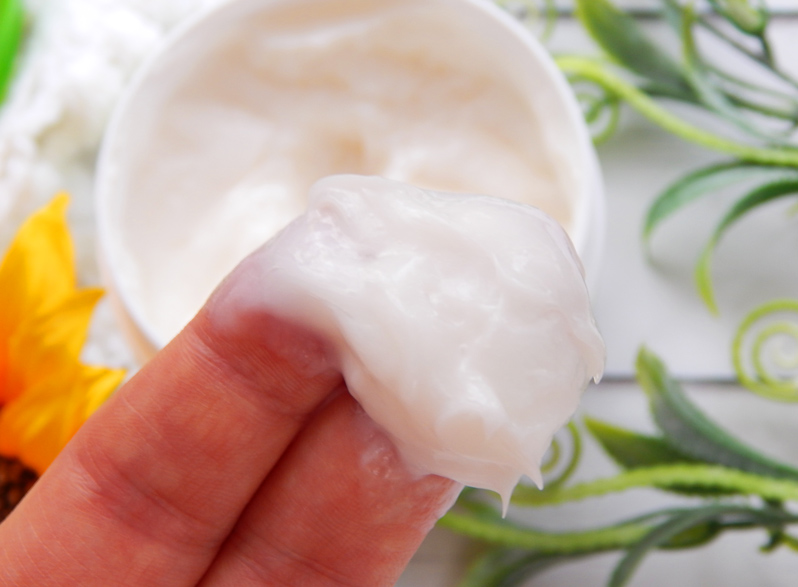 Konsystencja jest dość gęsta, budyniowa, ale bardzo łatwo rozprowadza się na wilgotnych włosach. Wielki plus za wydajność, mimo moich długich włosów, nie potrzebowałam stosować zbyt dużo.
