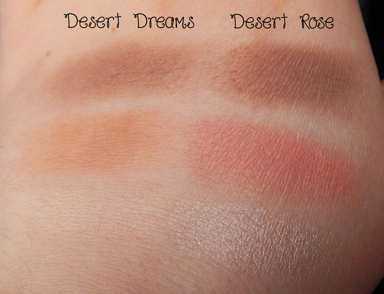 …Desert Rose! To zdecydowanie mocniejsza pozycja w duecie do konturowania. Znajdziemy w niej nie tylko chłodny, średni brąz idealny do konturowania twarzy, ale także róż w bardzo przyjemnym, nieco koralowym odcieniu oraz przyzwoity, szampański rozświetlacz. OK nie jest to produkt z wielkim wow! Ma jednak swoje zalety – przede wszystkim w jednej paletce mamy wszystko co przydaje się w codziennym makijażu. A ja mam wielkie problemy z porannym wstawaniem…