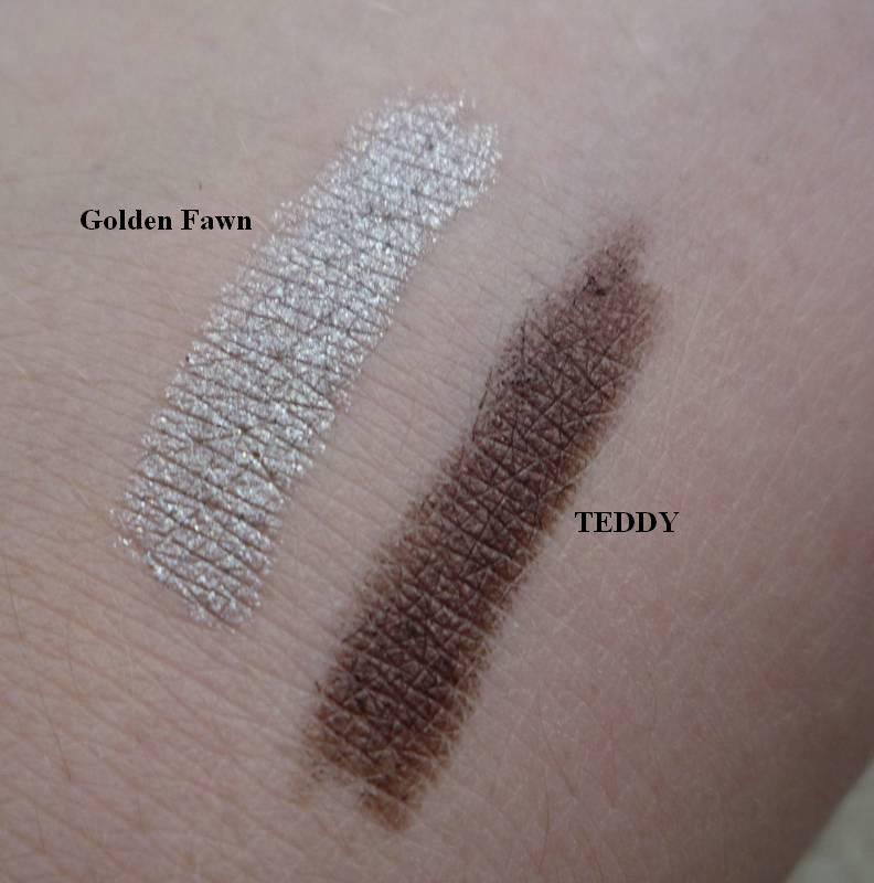 Problemy, problemami, ale przecież nie mogę zaniedbywać czysto kosmetycznych tematów. Jak pewnie zauważyłyście, w moim makijażu przeważają odcienie brązu. Na co dzień często rezygnuję z cieni na rzecz kolorowych kredek do oczu. Pozwalają na ekspresowe wykonanie makijażu i świetnie podkreślają oczy. Zebrałam już pokaźną kolekcję, ale dziś chętnie podzielę się z Wami moimi zdecydowanymi ulubienicami, które z reguły stosuję razem. Są to : trwała kredka do powiek ESSENCE odcień 08 TEDDY ( lekko połyskliwa ) oraz żelowa kredka do oczu AVON Super Shock odcień Golden Fawn ( metaliczna ).