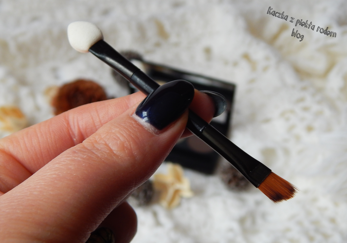 W kasetce znajduje się lusterko i aplikator, O ile lusterko to bardzo pomocny gadżet o tyle aplikator jest dość średni – wolę swoje pędzle.