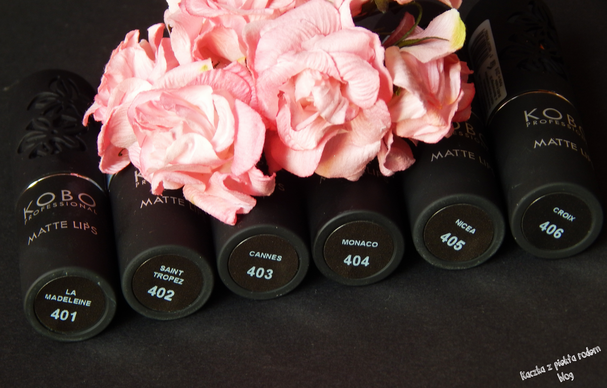 401 La Madeleine to nudziakowy beż, neutralna tonacja o idealnej temperaturze to w zasadzie świetne dopełnienie każdego makijażu. 402 Saint Tropez to żywy, koralowy róż. Pięknie ożywia twarz i dodaje dziewczęcego uroku. 403 Cannes to faktycznie kolor niczym czerwony dywan na festiwalu. Idealna, żywa, bardzo soczysta czerwień. 404 Monaco to intensywny fiolet – kolor dla koneserów, już drugi w mojej kolekcji. 405 Nicea – moja absolutna miłość. Kolor, który idealnie współgra z moją karnacją i temperamentem. To taka brudna, jasna śliwka. Coś nie do opisania. 406 Croix – trudny kolor wymagający nieco precyzji w nakładaniu – winne, ciemne bordo.