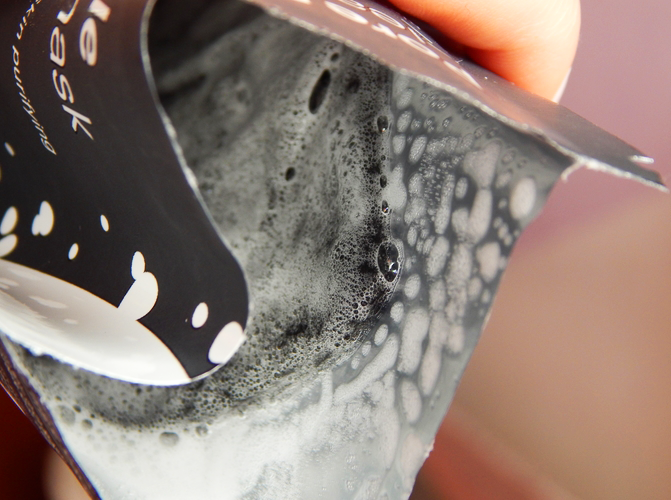 Z pozoru tradycyjna maska w płacie choć już samo czarne, ciekawe dla oka opakowanie może sugerować, że mamy do czynienia z czarnym koniem wśród produktów tego typu. Przed otwarciem saszetki należy dobrze wymiętolić opakowanie w dłoniach, aby zawartość 23 ml kosmetyku równomiernie rozłożyła się na tkaninie.
