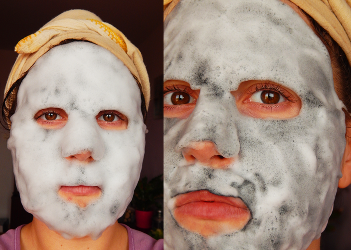 Maseczka zmusza nas do relaksu – warto nałożyć ją na twarz i spokojnie poleżeć czekając na efekty, Z sekundy na sekundę, na naszych oczach, a w zasadzie na naszej skórze zaczyna dziać się magia. Pianka, piana – coraz więcej piany! Przyjemny, bąbelkowy masaż skóry w pakiecie. A efekty?