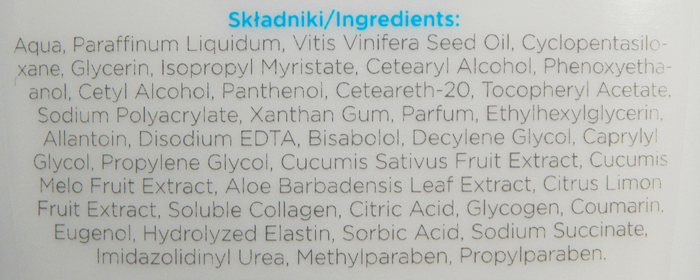 Produkt ma bardzo leciutką konsystencję typu mleczko i wchłania się ekspresowo. Do tego delikatny przyjemny zapach i poza parafiną ma naprawdę przyjemny skład.
